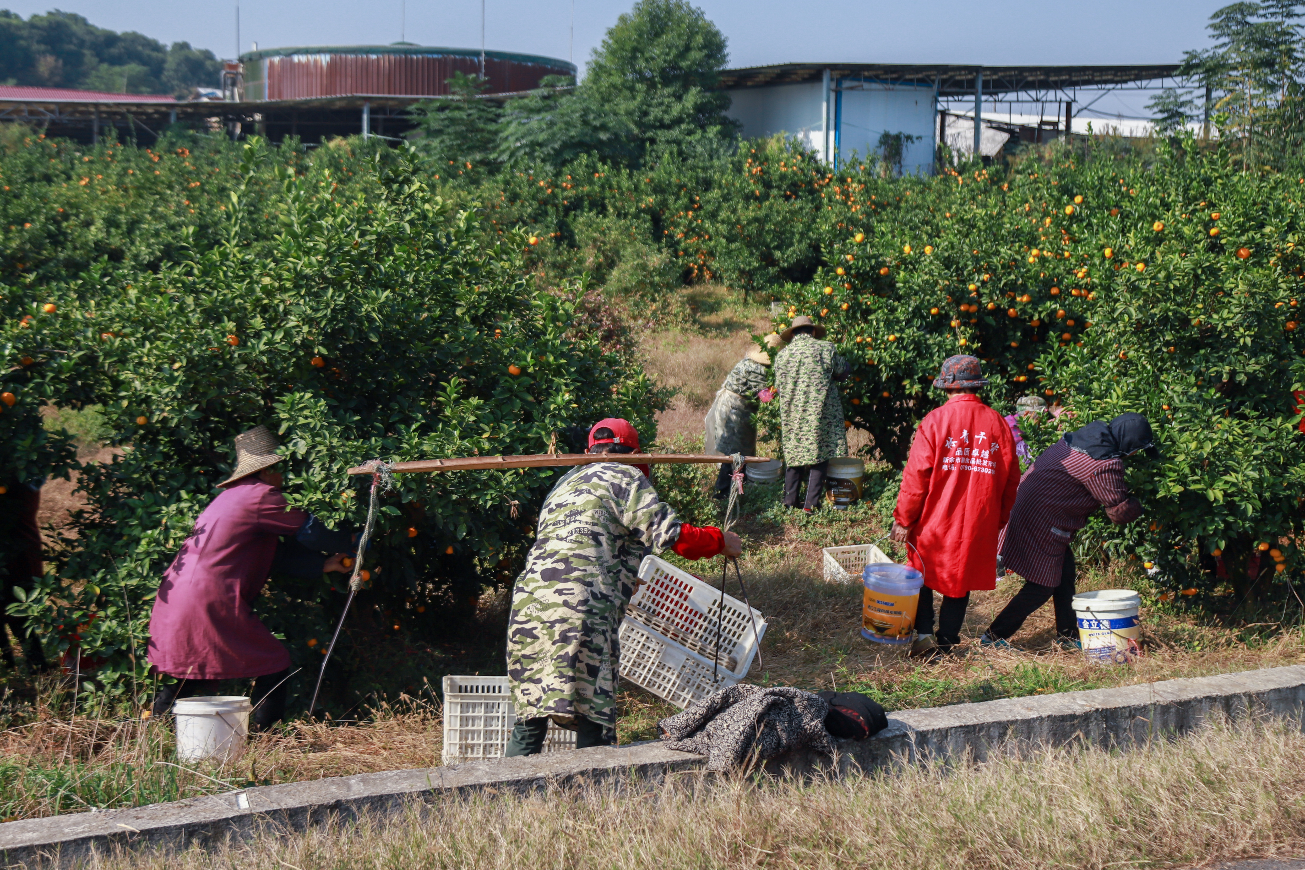 珊娜果园种植基地是新余蜜桔的核心产区之一,漫山桔树枝繁叶茂,金黄果实缀满枝头,清甜果香在山间弥漫。在果农的专业引导下,师生们迅速分组进入标准化种植区域,手持采摘剪刀与收纳袋,与农户并肩投入蜜桔采收劳作。