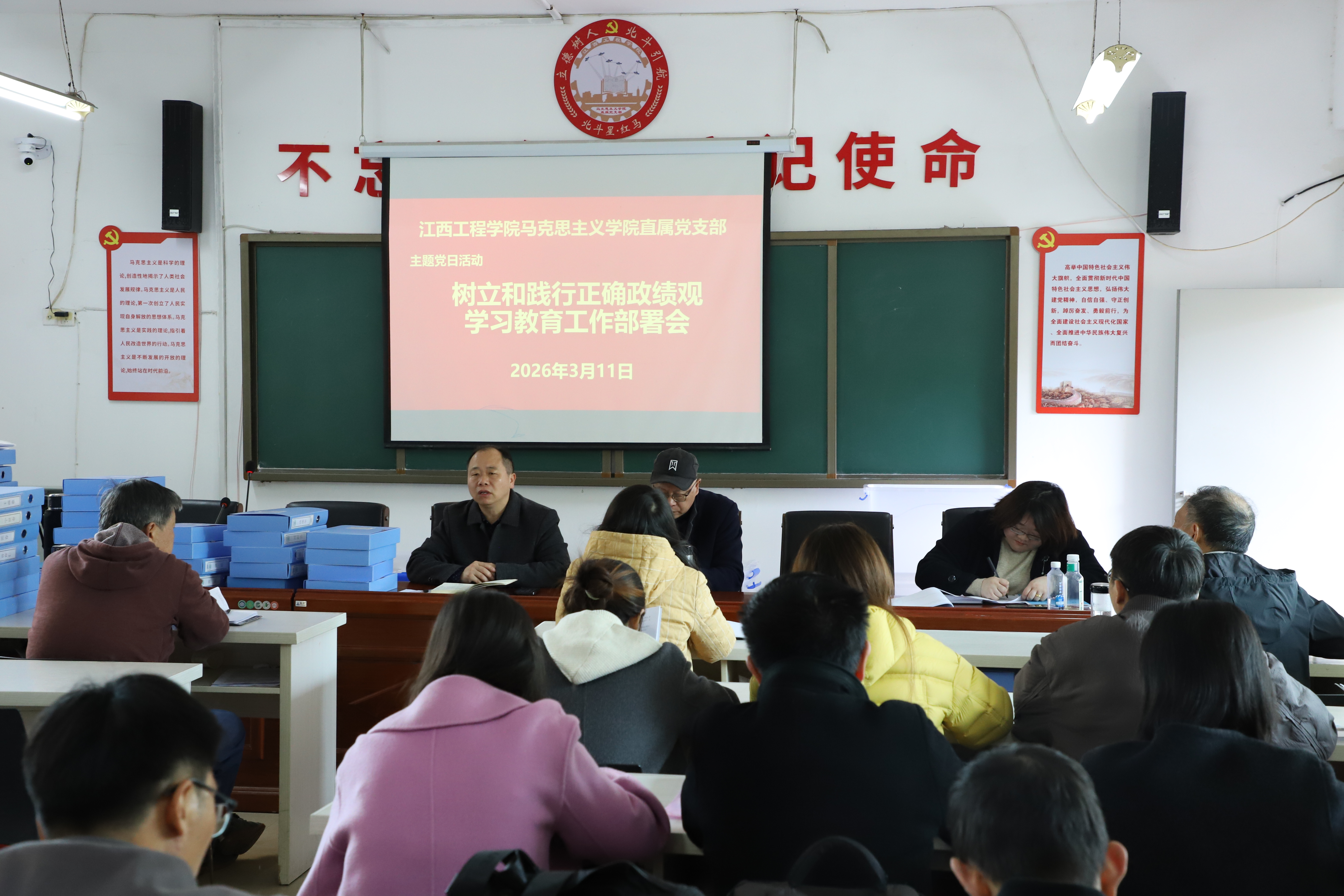 3月11日下午,江西工程学院马克思主义学院直属党支部在A201活动室召开树立和践行正确政绩观学习教育启动部署会。学院领导班子成员、全体支委委员、党员教师参加会议,会议由学院直属党支部书记于永清主持。