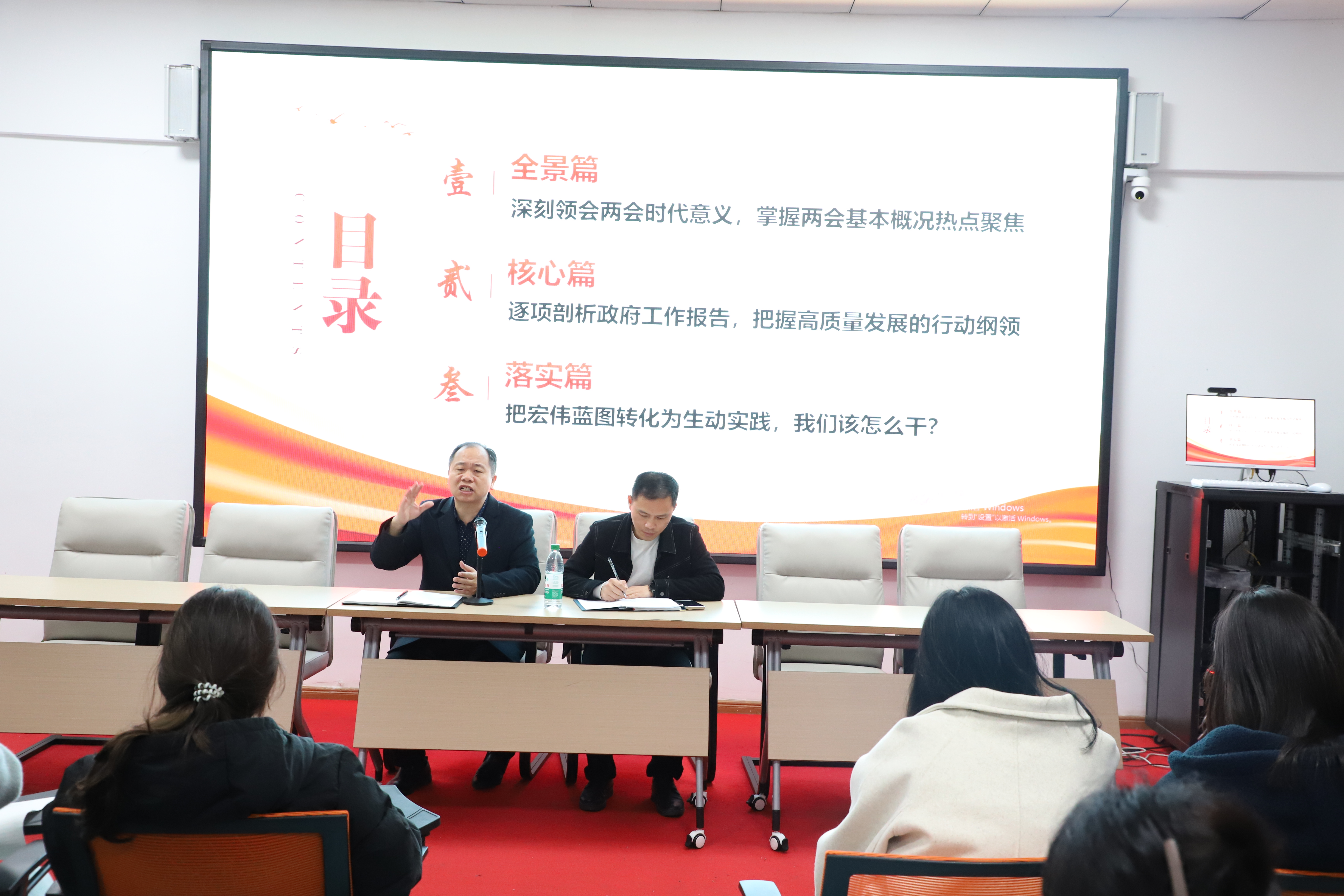 “2026年作为‘十五五’开局之年,国家将坚持创新驱动发展战略,这为青年学子提供了广阔的奋斗舞台。”宣讲会上,于永清系统传达了2026年全国两会精神,重点解读了政府工作报告中关于教育强国、科技自立自强的部署要求。他结合两会提出的“分类推进高校改革”“动态调整学科专业”“培养应用型创新人才”等核心内容,深入分析了“十五五”时期我国在集成电路、航空航天、生物医药等新兴产业的发展布局,以及京津冀、长三角、粤港澳大湾区三大世界级科技创新中心建设规划,让学子们清晰把握国家战略导向与行业发展趋势。