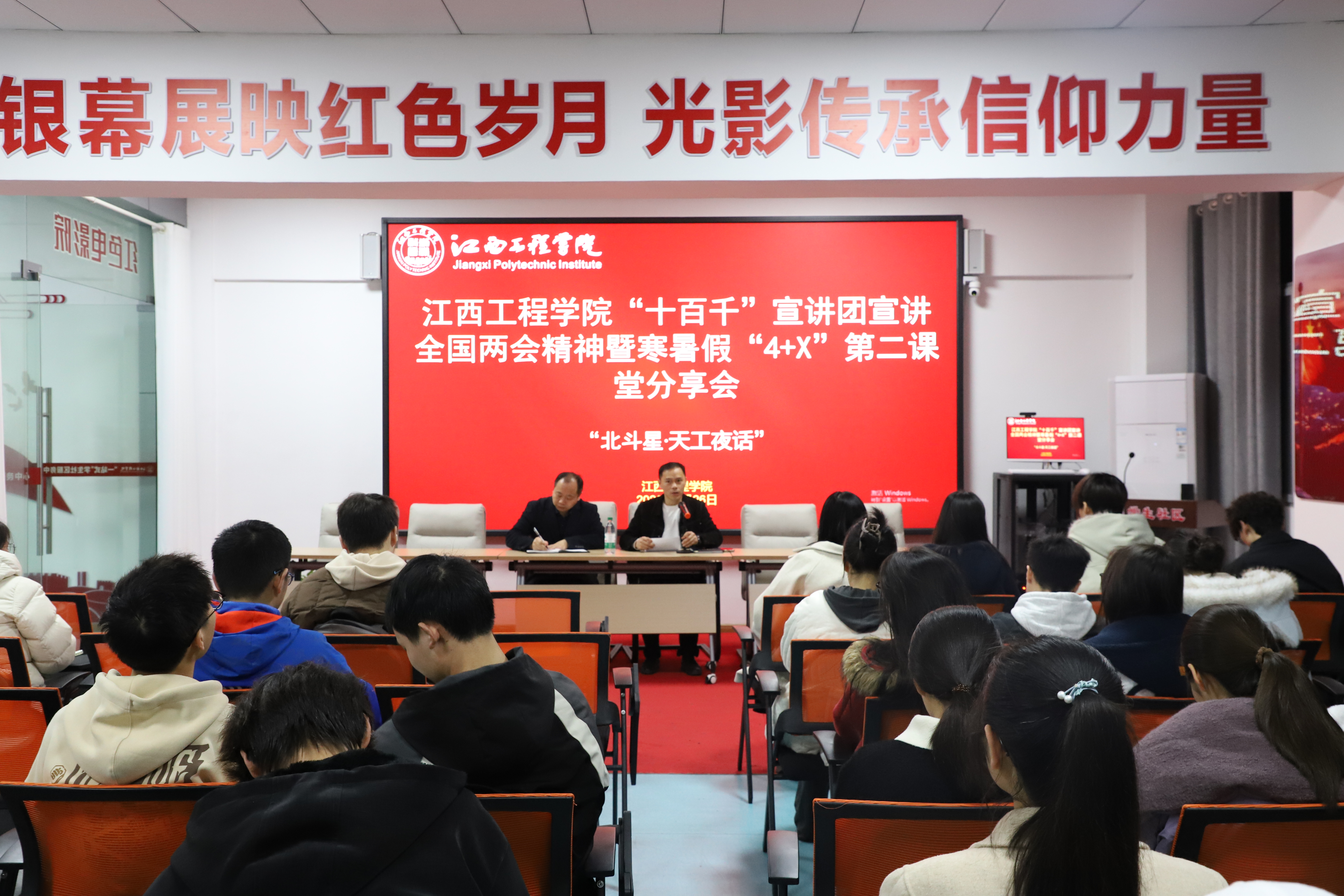 据悉,江西工程学院始终以“北斗领航铸魂育人”为根本,通过“北斗星・天工夜话”“行走的思政课”等品牌活动,推动党的创新理论与校园实践深度融合。后续,学校还将开展“创新创业看江工”“英雄模范进校园”等系列活动,持续深化两会精神学习贯彻,扎实推进本科教学工作合格评估工作,引导广大青年学子在理论学习中坚定信念,在实践磨砺中勇担使命,为强国建设、民族复兴贡献江工力量。